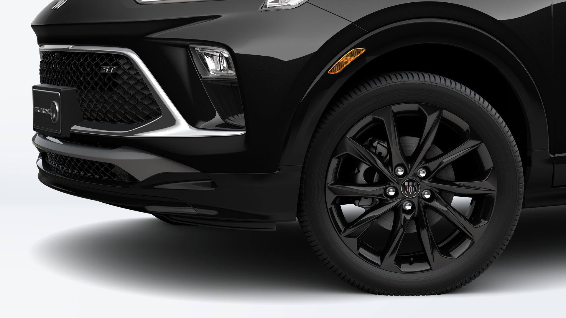 2026 Buick Encore GX Sport Touring in Ebony Twilight Metallic and Ebony Seats Interior With Santorini Blue Stitc Premium Synthetic and is equipped with the following: AWD ECOTEC 1.3L Turbo Advanced Technology Package (Adaptive Cruise Control, HD Surround Vision, Rear Park Assist, and Wireless Charging), Comfort Package (2-Way Power Driver Lumbar Control, 8-Way Power Driver Seat Adjuster, Flat-Folding Front Passenger Seatback, Heated Driver and Front Passenger Seats, Heated Steering Wheel, and Rear Center Armrest), Experience Buick Package (Power Panoramic Tilt-Sliding Moonroof and Wheels: 19 Gloss Black Aluminum), Preferred Equipment Group 1SD, 3.17 Final Drive Axle Ratio, 4-Way Manual Passenger Seat Adjuster, 4-Wheel Disc Brakes, 6-Way Manual Driver Seat Adjuster, 7 Speakers, ABS brakes, Air Conditioning, Alloy wheels, AM/FM radio: SiriusXM, Auto High-beam Headlights, Automatic temperature control, Brake assist, Bumpers: body-color, Compass, Delay-off headlights, Deleted Mobile Service Plus, Driver door bin, Driver vanity mirror, Dual front impact airbags, Dual front side impact airbags, Electronic Stability Control, Emergency communication system: OnStar and Buick connected services capable, Enhanced Performance 7-Speaker System with Amplifier, Front anti-roll bar, Front Bucket Seats, Front Center Armrest, Front reading lights, Front wheel independent suspension, Fully automatic headlights, Heated door mirrors, Illuminated entry, Knee airbag, Leatherette Seat Trim, Low tire pressure warning, Mechanical Jack with Tools, Occupant sensing airbag, Outside temperature display, Overhead airbag, Overhead console, Panic alarm, Passenger door bin, Passenger vanity mirror, Power door mirrors, Power steering, Power windows, Radio data system, Radio: AM/FM Audio System, Rear reading lights, Rear side impact airbag, Rear window defroster, Rear window wiper, Remote keyless entry, Ride and Handling Suspension, Security system, SiriusXM Trial Subscription, Speed control, Speed-sensing steering, Split folding rear seat, Spoiler, Sport steering wheel, Steering wheel mounted audio controls, Tachometer, Telescoping steering wheel, Tilt steering wheel, Traction control, Trip computer, Variably intermittent wipers, Wheels: 18 Gloss Black Aluminum, and Wireless Apple CarPlay/Wireless Android Auto.
