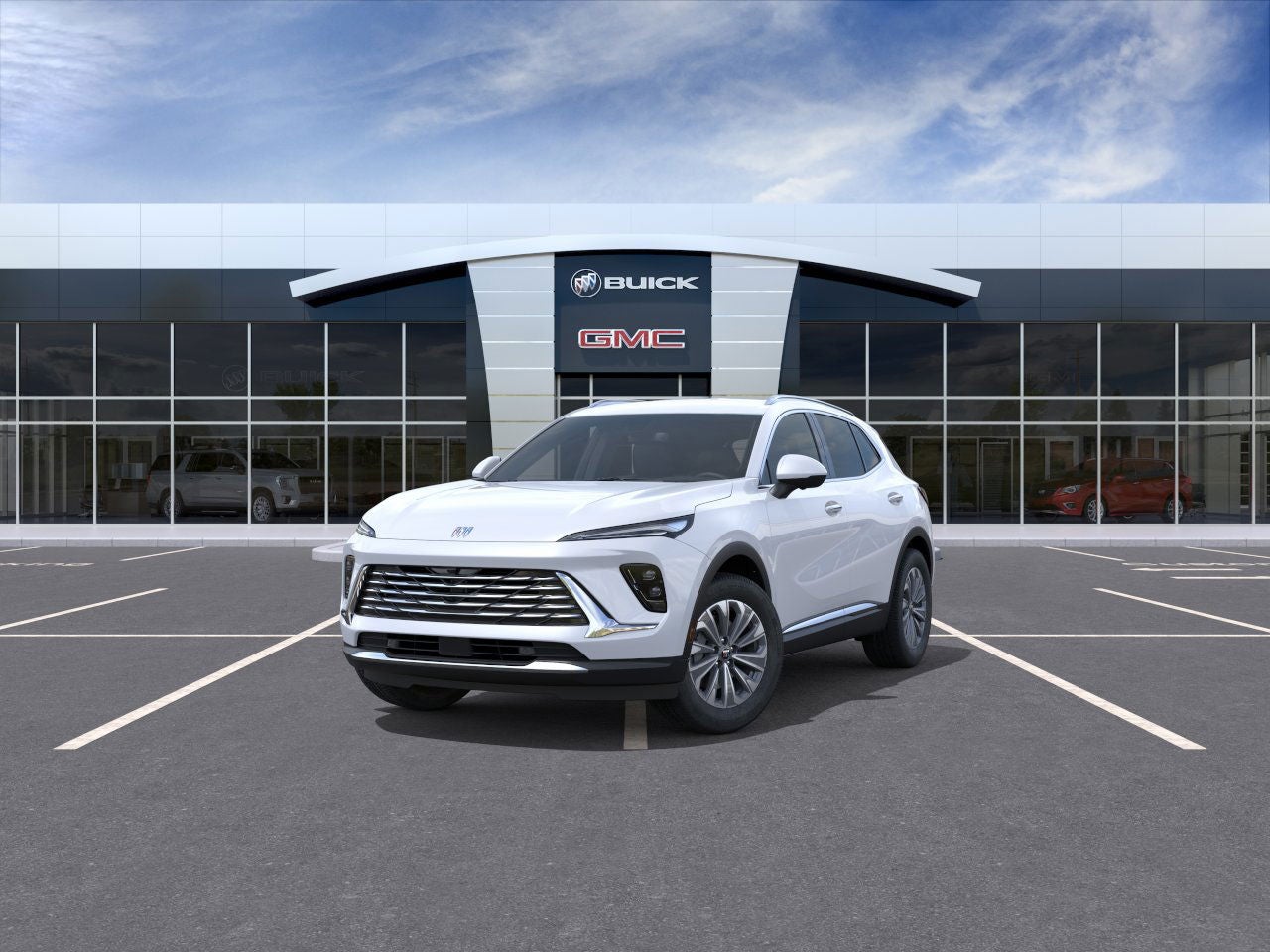 2026 Buick Envision Preferred in Iridescent White Tricoat and Sandstone Seats With Ebony Interior Accents Artificial Leather and is equipped with the following: AWD 2.0L Turbocharged Comfort and Convenience Package (3-Channel Programmable Universal Home Remote, Air Quality Indicator Sensor, Automatic Air Recirculation, Dual-Zone Automatic Climate Control Air Conditioning, Hands-Free Power Programmable Liftgate, Heated Driver and Front Passenger Seats, and Heated Steering Wheel), Preferred Equipment Group 1SC, 3.47 Final Drive Axle Ratio, 30 Diagonal LCD Display, 4-Wheel Disc Brakes, 9 Speakers, ABS brakes, Air Conditioning, Alloy wheels, AM/FM radio: SiriusXM, Auto High-beam Headlights, Auto-dimming door mirrors, Auto-dimming Rear-View mirror, Automatic temperature control, Bose Premium 9-Speaker Audio System Feature, Brake assist, Bumpers: body-color, Compass, Delay-off headlights, Deleted Mobile Service Plus, Driver 4-Way Power Lumbar Seat Adjuster, Driver 8-Way Power Seat Adjuster, Driver door bin, Driver vanity mirror, Dual front impact airbags, Dual front side impact airbags, Electronic Stability Control, Emergency communication system: OnStar and Buick connected services capable, Exterior Parking Camera Rear, Four wheel independent suspension, Front anti-roll bar, Front Bucket Seats, Front Center Armrest, Front Passenger 6-Way Manual Seat Adjuster, Front reading lights, Fully automatic headlights, Heads-Up Display, Heated door mirrors, Illuminated entry, Knee airbag, Leather steering wheel, Low tire pressure warning, Memory seat, Navigation System, Occupant sensing airbag, Outside temperature display, Overhead airbag, Overhead console, Panic alarm, Passenger door bin, Passenger vanity mirror, Perforated Leatherette Seat Trim, Power door mirrors, Power driver seat, Power Liftgate, Power steering, Power windows, Premium audio system: Buick Infotainment System, Radio data system, Radio: Infotainment Center, Rear anti-roll bar, Rear reading lights, Rear seat center armrest, Rear window defroster, Rear window wiper, Remote keyless entry, Security system, SiriusXM Trial Subscription, Speed control, Split folding rear seat, Spoiler, Steering wheel mounted audio controls, Telescoping steering wheel, Tilt steering wheel, Traction control, Trip computer, Variably intermittent wipers, Wheels: 18 Alloy with Technical Gray, and Wireless Apple CarPlay/Wireless Android Auto.